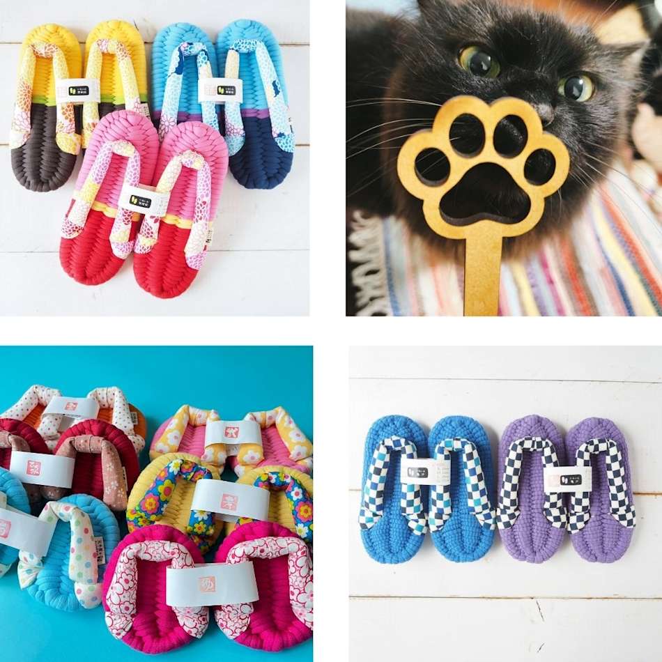 お子様向けのKIDSサイズ、足を鍛えるために履く足半布ぞうり、また、新人さんが編んだアウトレット品をお安く販売いたします。ネコのおもちゃキット「猫棒」も!