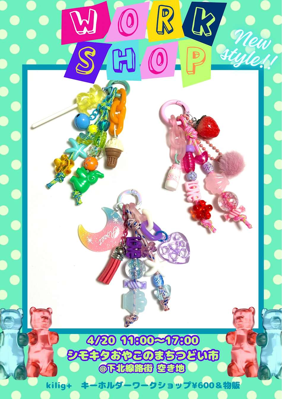 普段は大人向けにモロッコカゴ編みワークショップを随時開催しています。まちつどい市では、大人も子供も作れるキーホルダーワークショップをやります。小さいお子さんも大人の方と一緒に出来ます!