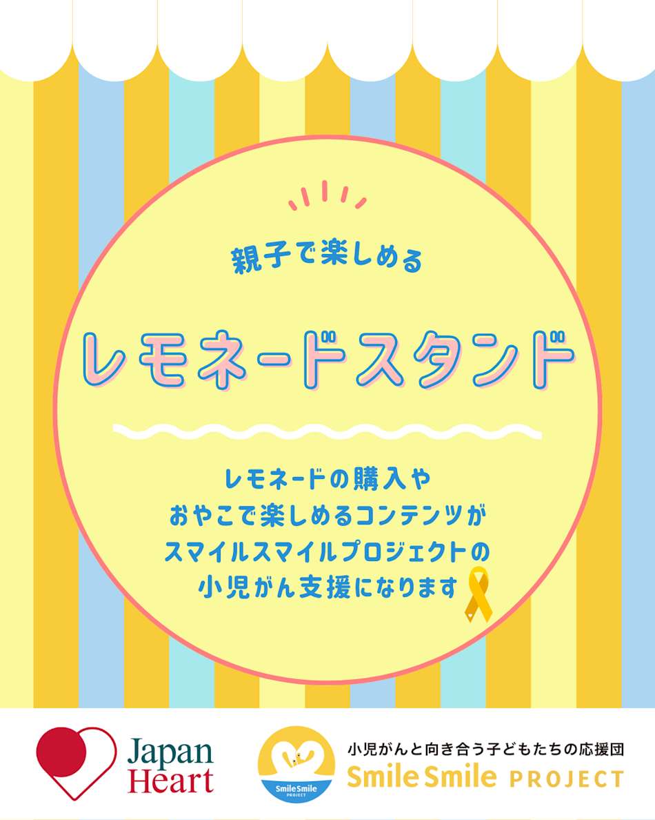 小児がんの子どもと家族の旅行に医療者が付き添う活動を行っているスマイルスマイルプロジェクト。小児がん支援につながるレモネードの販売や小児がんを知るおやこで楽しめるコンテンツをご用意しております!ぜひお子さんと一緒にお立ち寄りください♪