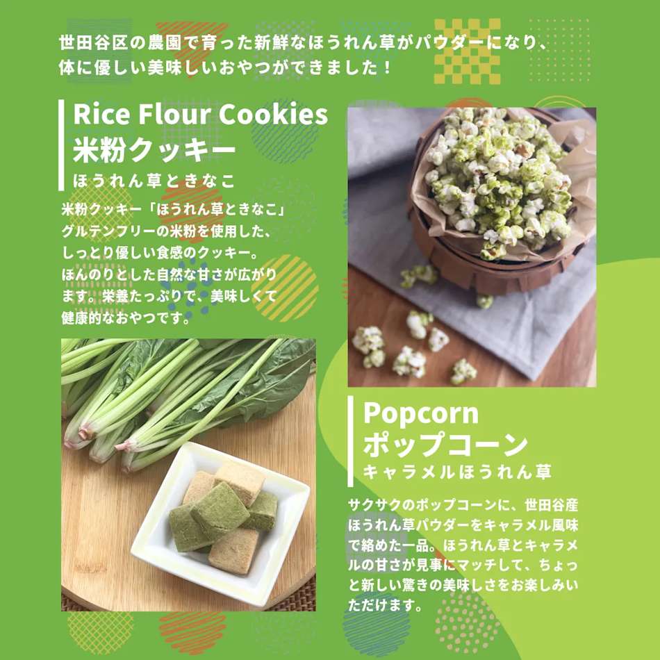 世田谷区の畑で育った新鮮なほうれん草がパウダーになり体に優しい美味しいおやつができました!